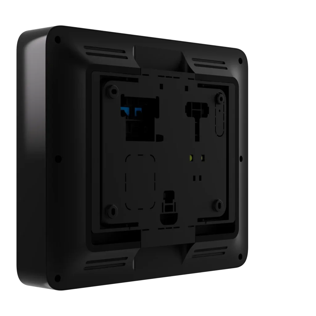 Die Stromversorgung erfolgt über 240 V~ Netzspannung und wird durch eine interne Pufferbatterie für 24 oder 72 Stunden abgesichert. Die kabellose Zentrale ist in Schwarz und Weiß erhältlich und passt sich so jeder baulichen Umgebung optimal an – ob Technikraum, Rezeption oder Verwaltungsbüro.