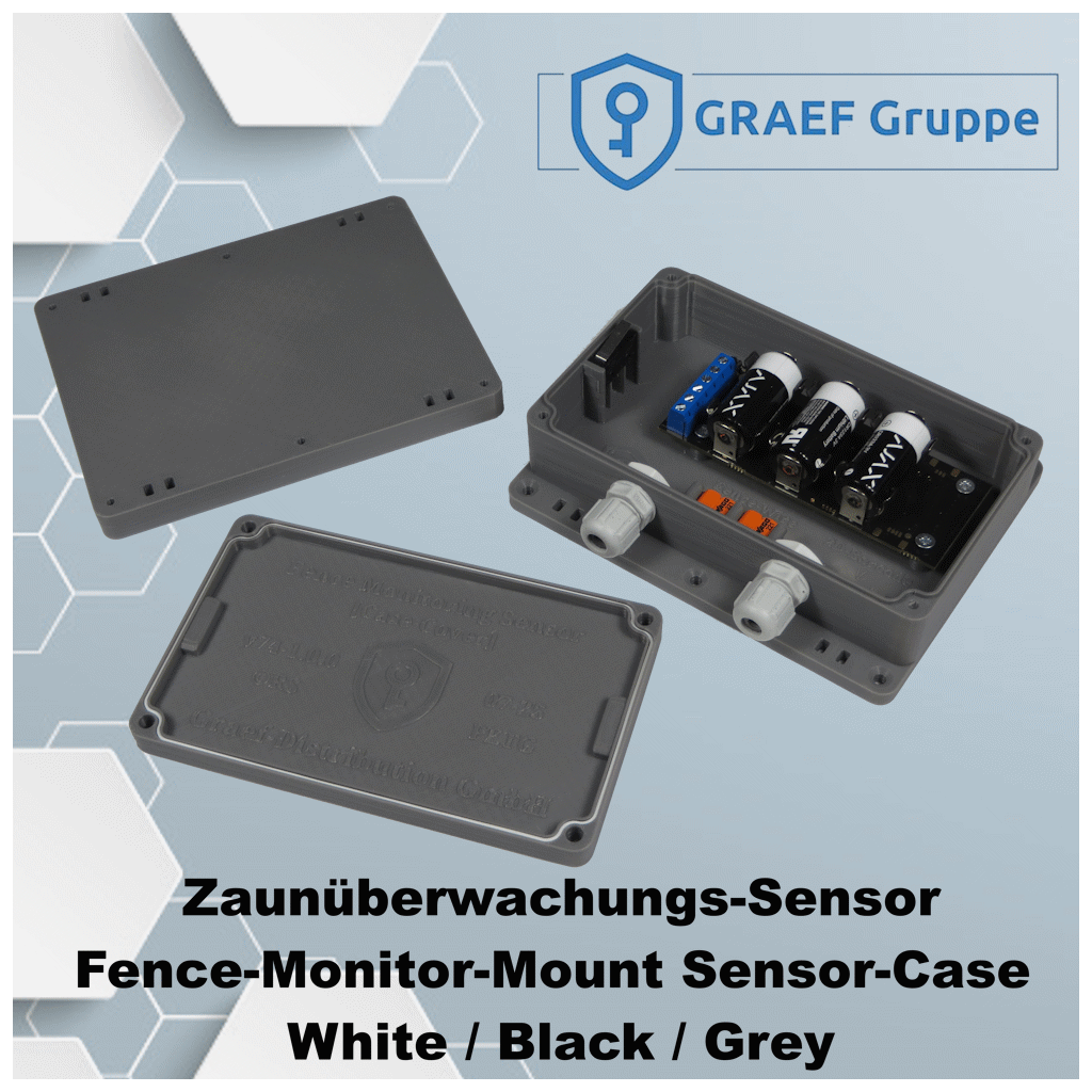 Das Montagegehäuse "Fence Monitoring Mount Sensor Case" dient zur Anbringung des Ajax