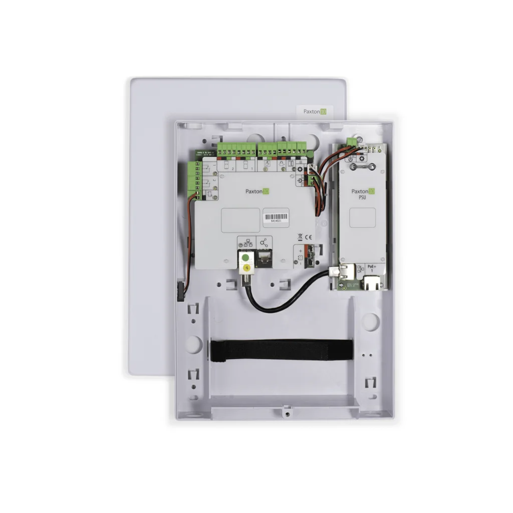 Le contrôleur de porte Paxton10 - PoE est un élément important du système de contrôle d'accès Paxton10. Chaque contrôleur de porte commande une seule porte et peut prendre en charge jusqu'à 3 connecteurs Paxton10 pour des fonctions supplémentaires. Le système Paxton10 peut comprendre jusqu'à 1000 contrôleurs de porte au total. Le contrôleur de porte communique via TCP/IP et peut être intégré de manière transparente dans les infrastructures de réseau existantes.