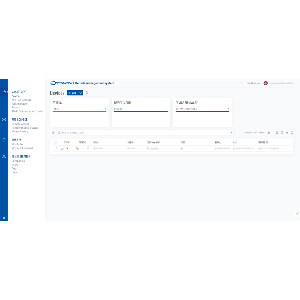 RMS Connect : Garantit un accès direct aux appareils intelligents via les routeurs Teltonika.