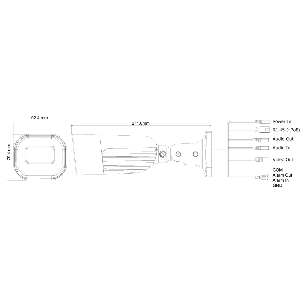 - Possibilités de connexion : PoE, carte SD (jusqu'à 256 Go), entrée/sortie d'alarme, entrée/sortie audio